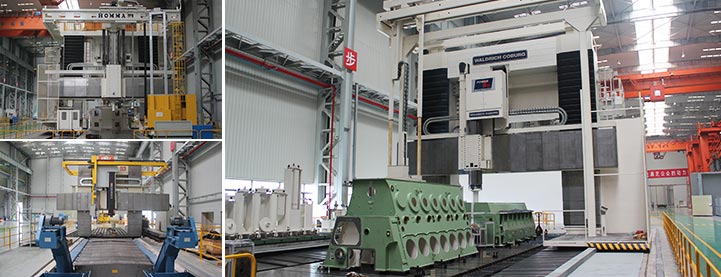 機加工車間建設于2011年,面積1.6萬多平方米,投資額達3.6億人民幣。具備年產120萬馬力的船用低速柴油機機架、機座、氣缸體三大件加工能力,同時可承接各種外單位委托加工業務。